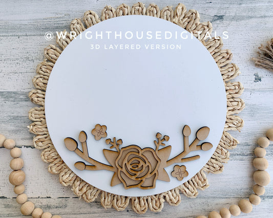 Spring Rose and Rosebud Door Hanger Round - Spring Floral Sign Making and DIY Kits - Cut File For Glowforge Laser - Digital SVG File
