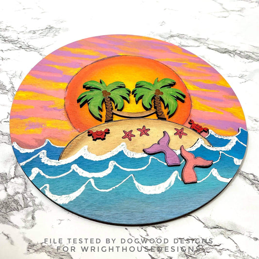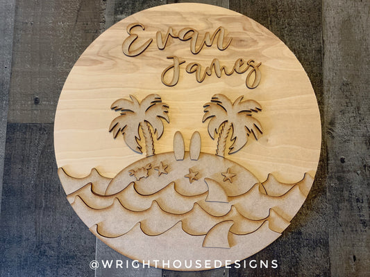 Surfing In Paradise Shark Island Baby Nursery Round - Sign Making Home Decor and DIY Kits - Cut File For Glowforge Lasers - Digital SVG File