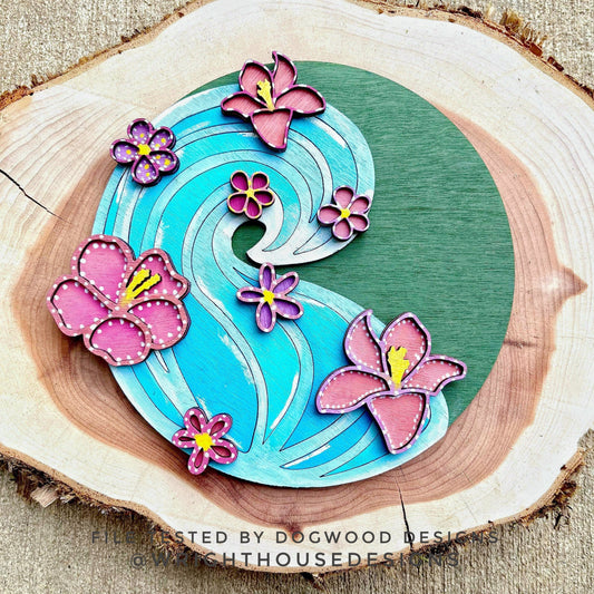 Shaka Tropical Waves Hibiscus Door Hanger - Summer Floral Sign Making and DIY Kits - Cut File For Glowforge Laser - Digital SVG File