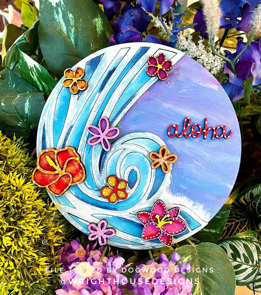 Aloha Waterfall Door Hanger Round - Summer Floral Sign Making and DIY Kits - Single Line Cut File For Glowforge Laser - Digital SVG File