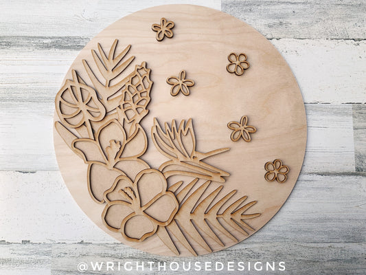 Hibiscus Plumeria Palms Tropical Summer Door Hanger - Floral Sign Making and DIY Kits - Cut File For Glowforge Laser - Digital SVG File