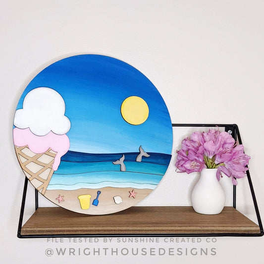 Sweet Summer Ice Cream Cone Beach Door Hanger Round - Sign Making and DIY Kits - Cut File For Glowforge Lasers - Digital SVG File