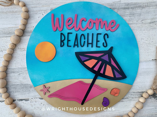 Beach Bum Umbrella Summer Door Hanger Round Bundle - Sign Making and DIY Kits - Cut File For Glowforge Lasers - Digital SVG File