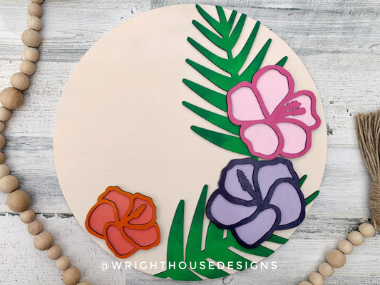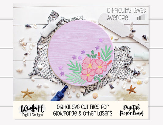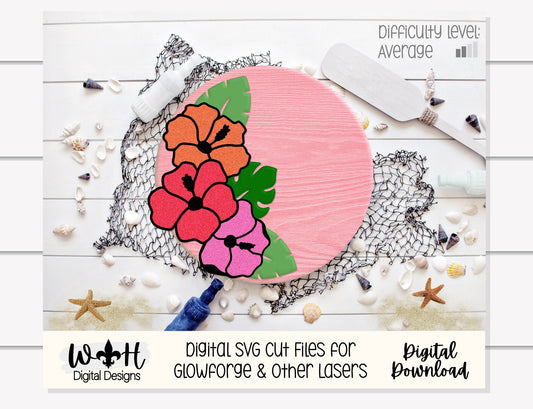 Summer Hibiscus and Greenery - Tropical Beach Door Hanger - Floral Sign Making and DIY Kits - Digital SVG File Cut File For Glowforge Lasers