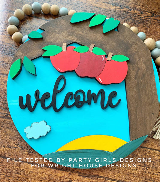 Apple Tree Orchard Fruit Theme Nursery and Door Hanger Round - Sign Making and DIY Kits - Cut File For Glowforge Lasers - Digital SVG File
