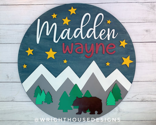 Bear Mountain Woodland Baby Nursery Round - Sign Making Home Decor and DIY Kits - Cut File For Glowforge Lasers - Digital SVG File