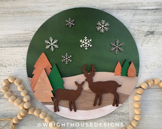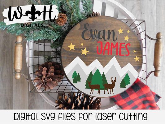 Woodland Deer Mountainscape Baby Nursery Round - Sign Making Home Decor and DIY Kits - Cut File For Glowforge Lasers - Digital SVG File
