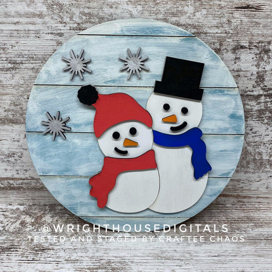 Snowman Winter Snow Friends Door Hanger Round - Seasonal Sign Making and DIY Kits - Cut File For Glowforge Lasers - Digital SVG File