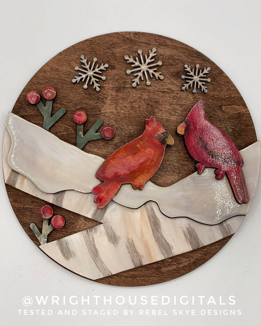 Winter Cardinals Christmas Memorial Round Sign - Sign Making and DIY Kits - Single Line Cut File For Glowforge Lasers - Digital SVG File