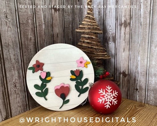 Christmas Poinsettia Blooms Floral Round - Seasonal Sign Making and DIY Kits - Single Line Cut File For Glowforge Lasers - Digital SVG File