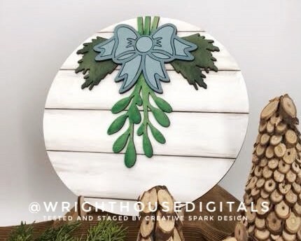 Meet Me Under The Mistletoe Christmas Round Sign - Sign Making and DIY Kits - Single Line Cut File For Glowforge Lasers - Digital SVG File