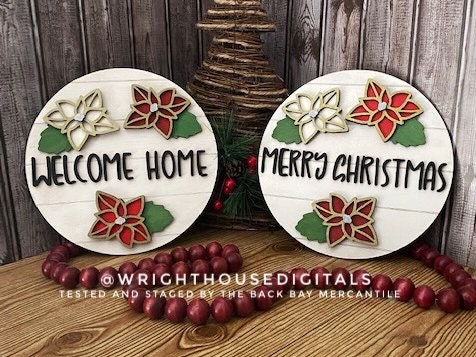 Poinsettia Christmas Welcome Home Floral Round - Sign Making and DIY Kits - Single Line Cut File For Glowforge Lasers - Digital SVG File