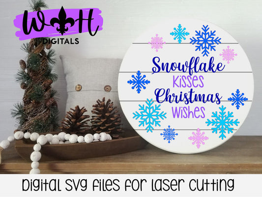 Snowflake Kisses Christmas Wishes Winter Door Hanger Round - Sign Making and DIY Kits - Cut File For Glowforge Lasers - Digital SVG File