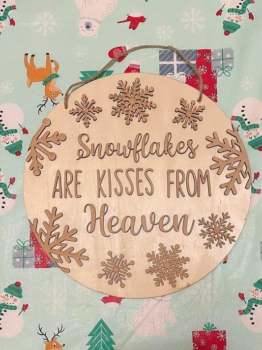 Snowflakes Are Kisses From Heaven Round - Christmas Sign Making and DIY Kits - Single Line Cut File For Glowforge Lasers - Digital SVG File