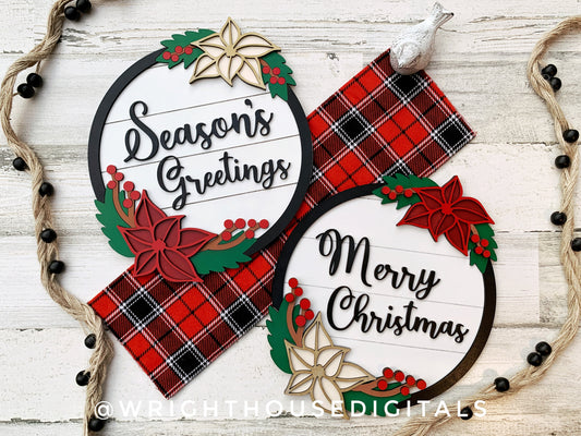 Holiday Poinsettia Floral Sign Bundle - Christmas Sign Making and DIY Kits - Single Line Cut File For Glowforge Lasers - Digital SVG File