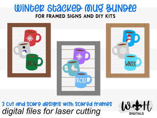 Winter Stacked Coffee Mugs Farmhouse Frame Sign Bundle - Tiered Tray Decor and DIY Kits - Cut File For Glowforge Lasers - Digital SVG File