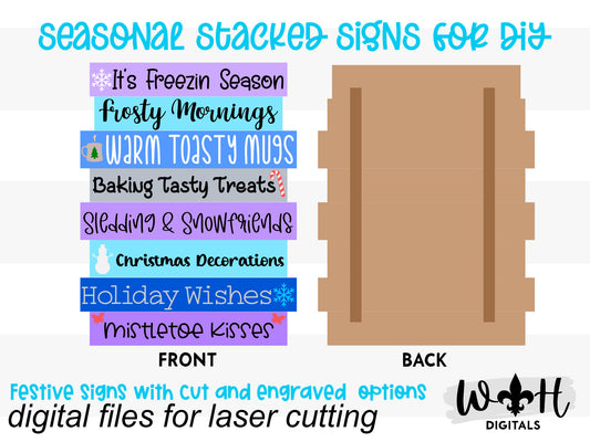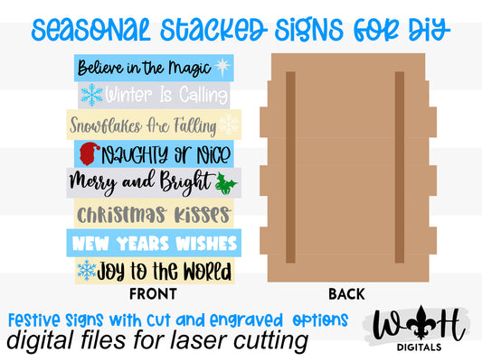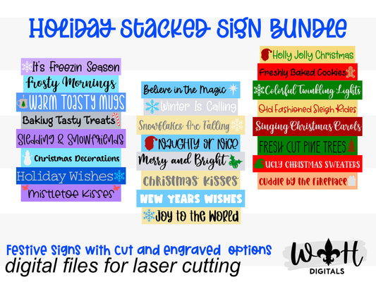 Christmas and Winter Bucket List Stacked Sign Bundle - Seasonal Wall Decor and DIY Kits - Cut File For Glowforge Lasers - Digital SVG File
