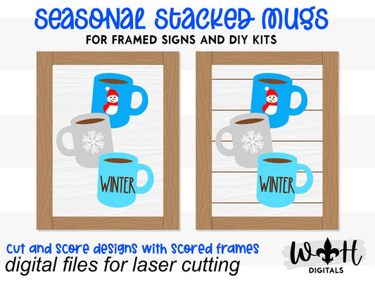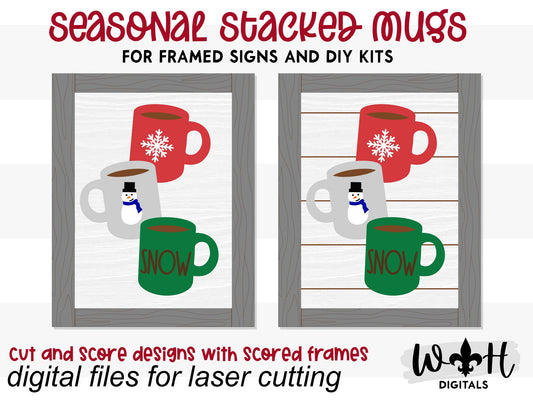 Winter Stacked Coffee Mugs Farmhouse Frame Sign - Seasonal Tiered Tray Decor and DIY Kits - Cut File For Glowforge Lasers - Digital SVG File