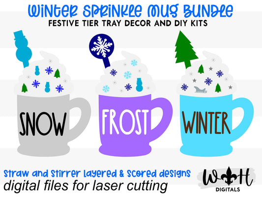 Winter Sprinkle Mugs Bundle - Seasonal Tiered Tray Decor and DIY Kits - Cut File For Glowforge Lasers - Digital SVG File