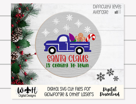 Santa Claus Is Coming To Town Christmas Door Hanger Round - Sign Making and DIY Kits - Cut File For Glowforge Lasers - Digital SVG File