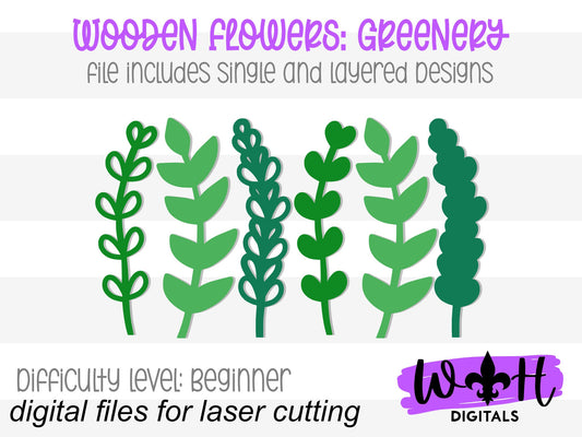 Greenery Wooden Laser Cut Flowers - Simple Diy Florals For Bouquets - Files for Sign Making - SVG Cut File For Glowforge - Digital File