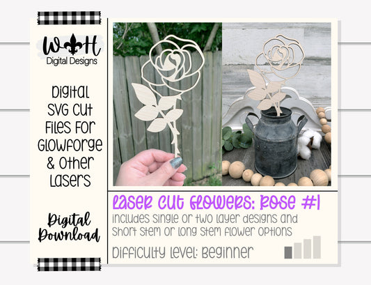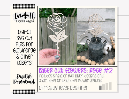 Rose Two Wooden Laser Cut Flowers - Simple Diy Florals For Bouquets - Files for Sign Making - SVG Cut File For Glowforge - Digital File