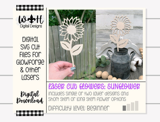 Sunflower Wooden Laser Cut Flowers - Simple Diy Florals For Bouquets - Files for Sign Making - SVG Cut File For Glowforge - Digital File