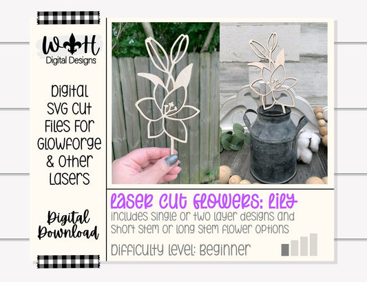 Lily Wooden Laser Cut Flowers - Simple Diy Florals For Bouquets - Files for Sign Making - SVG Laser Cut File For Glowforge - Digital File