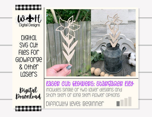 Stargazer Lily Wooden Laser Cut Flower - Simple Diy Florals For Bouquets - Files for Sign Making - SVG Cut File For Glowforge - Digital File