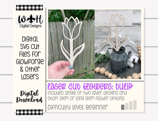 Tulip Wooden Laser Cut Flowers - Simple Diy Florals For Bouquets - Files for Sign Making - SVG Cut File For Glowforge - Digital File