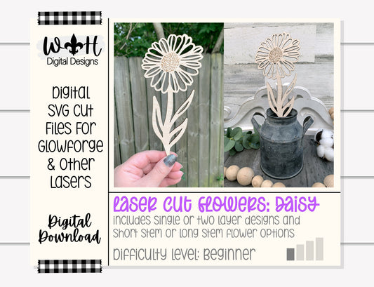 Daisy Wooden Laser Cut Flowers - Simple Diy Florals For Bouquets - Files for Sign Making - SVG Laser Cut File For Glowforge - Digital File