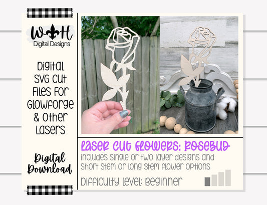 Rosebud Wooden Laser Cut Flowers - Simple Diy Florals For Bouquets - Files for Sign Making - SVG Cut File For Glowforge - Digital File
