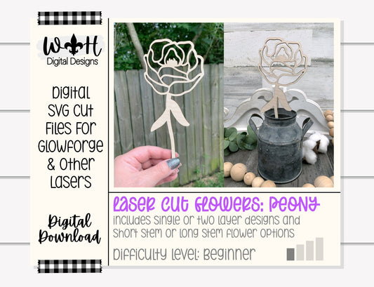 Peony Wooden Laser Cut Flowers - Simple Diy Florals For Bouquets - Files for Sign Making - SVG Cut File For Glowforge - Digital File
