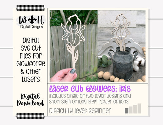Iris Wooden Laser Cut Flowers - Simple Diy Florals For Bouquets - Files for Sign Making - SVG Cut File For Glowforge - Digital File