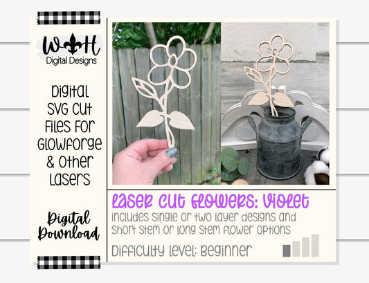 Violet Wooden Laser Cut Flowers - Simple Diy Florals For Bouquets - Files for Sign Making - SVG Cut File For Glowforge - Digital File