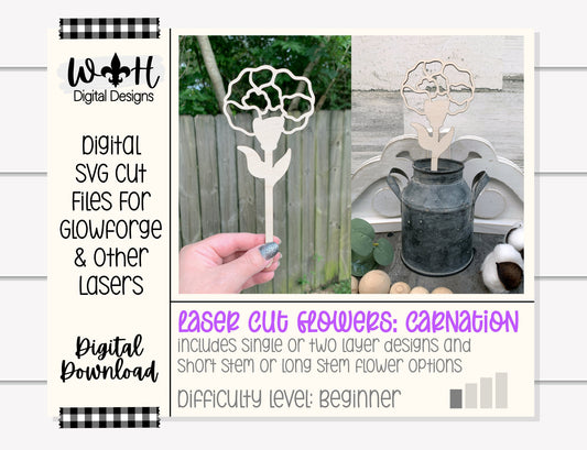 Carnation Wooden Laser Cut Flowers - Simple Diy Florals For Bouquets - Files for Sign Making - SVG Cut File For Glowforge - Digital File