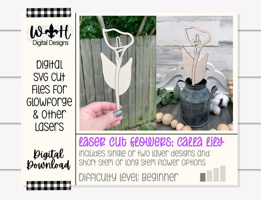 Calla Lily Wooden Laser Cut Flowers - Simple Diy Florals For Bouquets - Files for Sign Making - SVG Cut File For Glowforge - Digital File