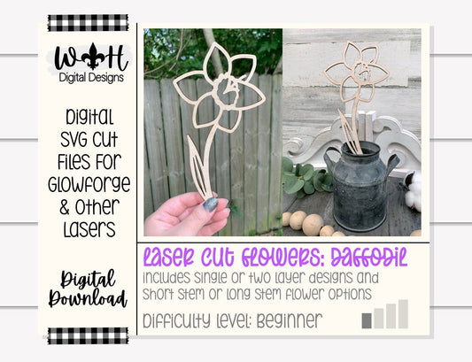 Daffodil Wooden Laser Cut Flowers - Simple Diy Florals For Bouquets - Files for Sign Making - SVG Cut File For Glowforge - Digital File