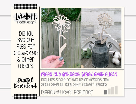 Black Eyed Susan Wood Laser Cut Flower - Simple Diy Florals For Bouquets - Files for Sign Making - SVG Cut File For Glowforge - Digital File