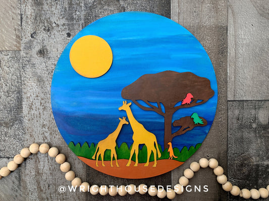 Giraffes On The Savanna Baby Nursery Round - Sign Making Home Decor and DIY Kits - Cut File For Glowforge Lasers - Digital SVG File