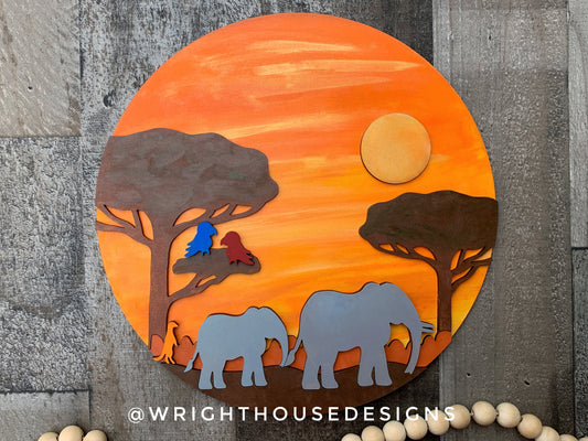 Elephants On the Savanna Baby Nursery Round - Sign Making Home Decor and DIY Kits - Cut File For Glowforge Lasers - Digital SVG File
