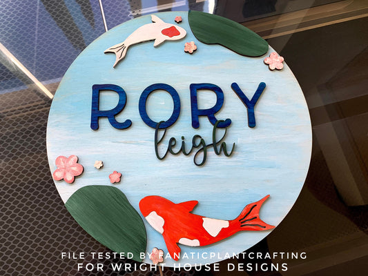 Zenful Koi Fish Pond Baby Nursery Round - Floral Sign Making Home Decor and DIY Kits - Cut File For Glowforge Lasers - Digital SVG File