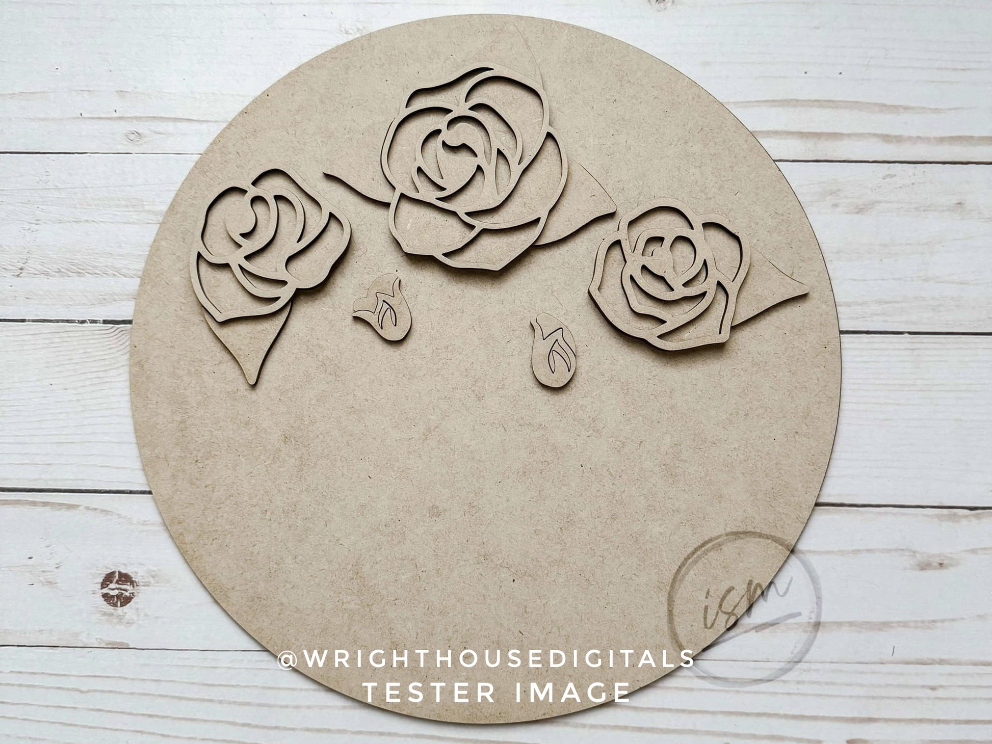 Jocelyn Laurel Three Roses Floral Bundle - Door Hanger Rounds - Sign Making and DIY Kits - Layered Floral Cut File For Glowforge Lasers - Digital SVG File